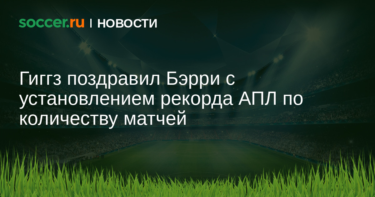 Бывший полузащитник «Манчестер Юнайтед» Райан Гиггз поздравил хавбека «Вест Бромвича» Гарета Бэрри, который в понедельник установил абсолютный рекорд Премьер-Лиги по числу матчей, проведя 633-й поединок в турнире. Предыдущий рекорд принадлежал Гиггзу.