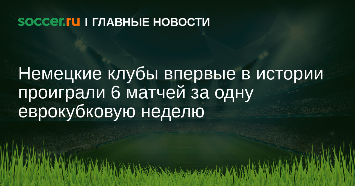 Немецкие клубы установили личный исторический рекорд — правда, со знаком «минус». Все шесть коллективов из Германии, принимающие участие в еврокубках на этой неделе, потерпели поражения. Ранее за один тур Лиги чемпионов и Лиги Европы уступали лишь пять немецких команд — дважды.