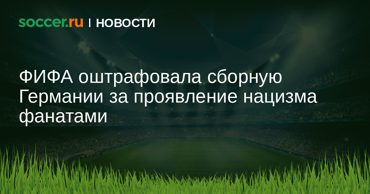 ФИФА оштрафовала сборную Германии на 28 тысяч евро за проявление нацизма болельщиками команды во время матча квалификации ЧМ-2018 с Чехией (2:1). Во время минуты молчания несколько сотен болельщиков сборной Германии скандировали оскорбительные кричалки и нацистские лозунги.