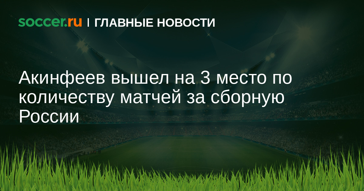 Акинфеев обошел своего одноклубника Василия Березуцкого, который провел на один матч меньше, и занял третье место по количеству встреч. 109 матчей в составе сборной России провел Виктор Онопко. На первом месте по этому показателю Сергей Игнашевич — защитник вышел в составе сборной 120 раз.