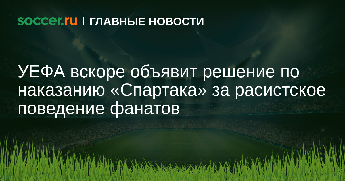 УЕФА может наказать «Спартак» за расистское поведение болельщиков в матче юношеской Лиги УЕФА против «Ливерпуля». Решение о наказании организация объявит в пятницу или в начале следующей недели. Об этом сообщили в пресс-службе УЕФА.