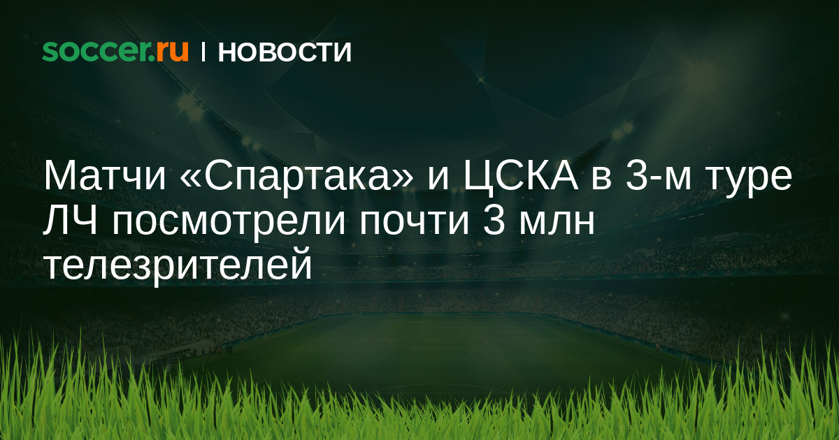 Матчи третьего тура Лиги чемпионов «Спартак» — «Севилья» (5:1) и ЦСКА — «Базель» (0:2) в России суммарно посмотрели почти 3 млн телезрителей, сообщили в пресс-службе телеканала «Матч ТВ».