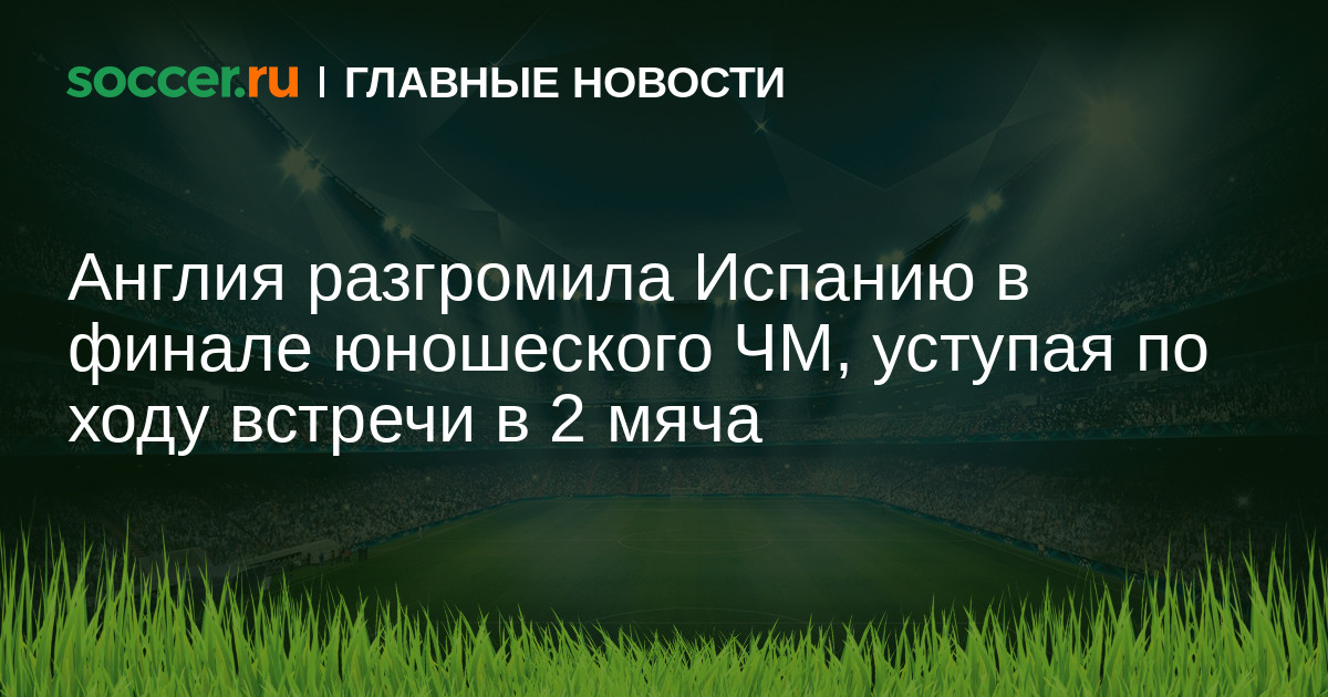 Сегодня в Калькутте состоялся финал юношеского чемпионата мира (до 17 лет) между сборными Англии и Испании. Англичане совершили удивительный камбэк, уступая по ходу встречи со счетом 0:2, но завершив поединок разгромной победой 5:2.