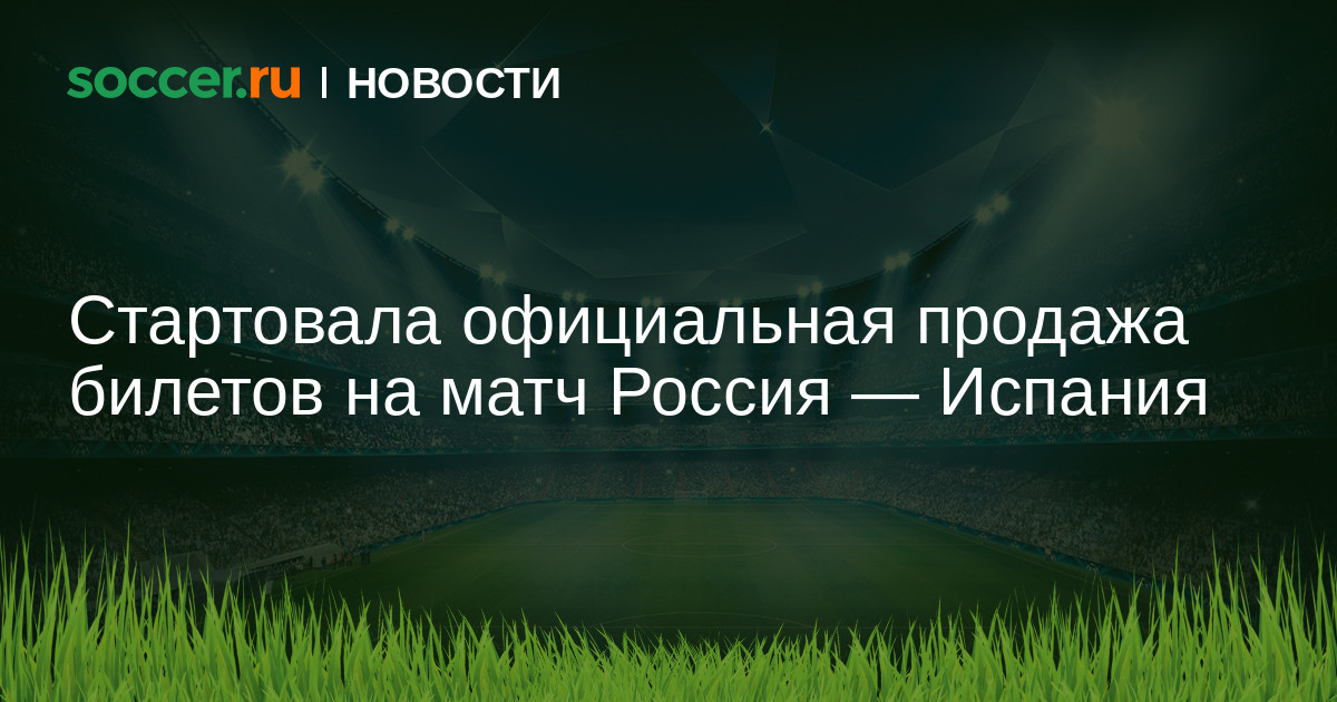 Стартовала продажа билетов на матч Россия — Испания. Стоимость билетов на поединок начинается с 600 рублей на места за воротами. Цена билетов на угловые сектора начинается с 800 рублей, на центральные сектора - от 1500 рублей. Также на матч Россия - Испания доступны билеты в VIP-ложи.
