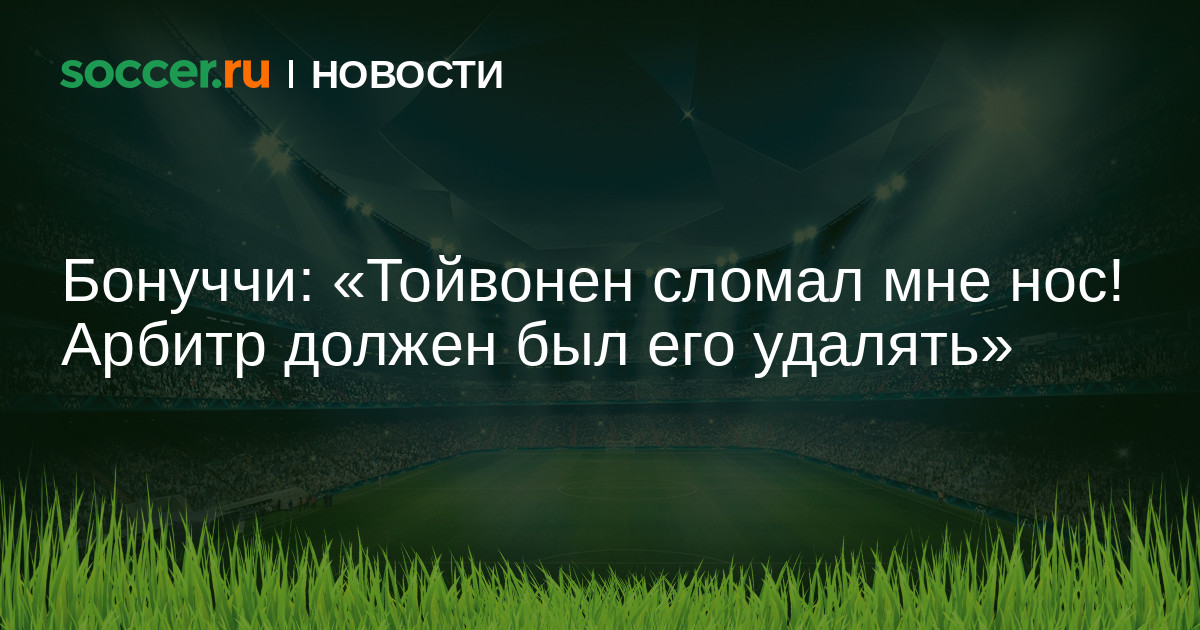 Защитник сборной Италии Леонардо Бонуччи убеждён, что главный арбитр первого стыкового матча со Швецией (0:1) должен был показать красную карточку шведскому форварду Оле Тойвонену. На 1-й минуте поединка Тойвонен ударил Бонуччи локтём и сломал ему нос, но рефери Чунейт Чакир никак не наказал шведского футболиста, показав предупреждение только его партнёру по команде Маркусу Бергу, протестующему против назначения штрафного удара.