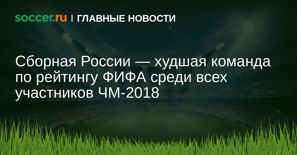 Согласно рейтингу ФИФА, сборная России является худшей командой среди всех участников турнира. Россияне занимают 65 место в рейтинге, незначительно отставая по очкам от сборной Кабо-Верде. На 63 позиции располагается другой участник ЧМ-2018 Саудовская Аравия, а следом за ней — сборная Южной Кореи.