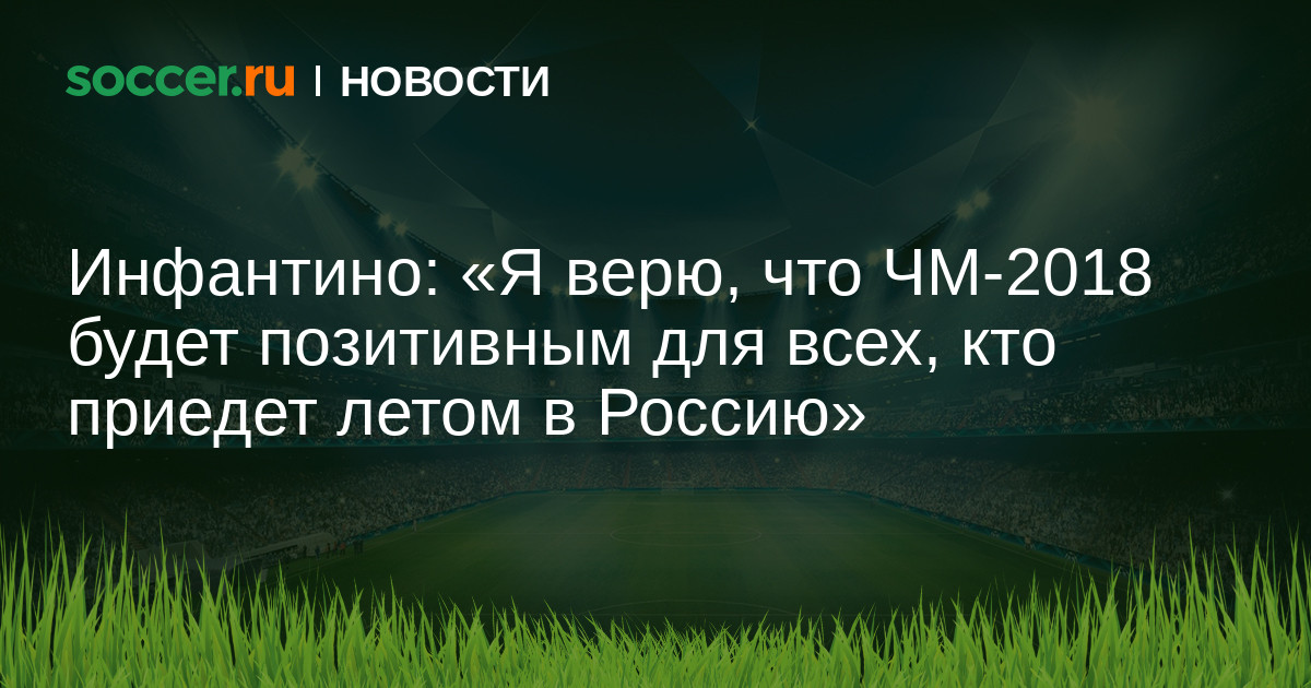 Президент ФИФА Джанни Инфантини уверен, что предстоящий ЧМ-2018, который пройдет в Москве, будет позитивным для всех, кто приедет в страну летом.