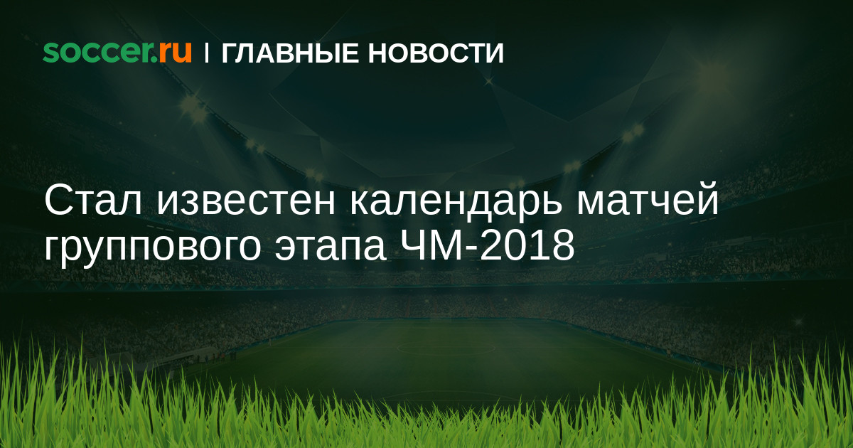 По итогам жеребьевки стал известен календарь матчей группового этапа ЧМ-2018. Напомним, что сборной России на групповой стадии ЧМ-2018 предстоит сыграть с командами Египта, Уругвая и Саудовской Аравии.
