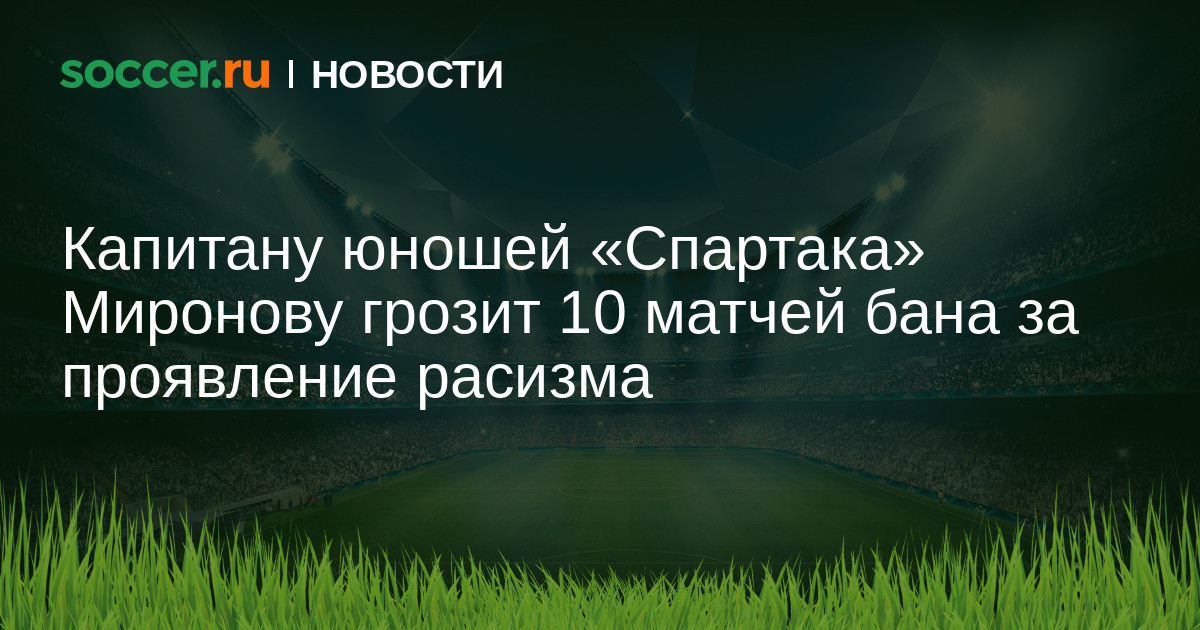 Капитан «Спартака» U19 Леонид Миронов может получить десять матчей дисквалификации за проявление расизма.