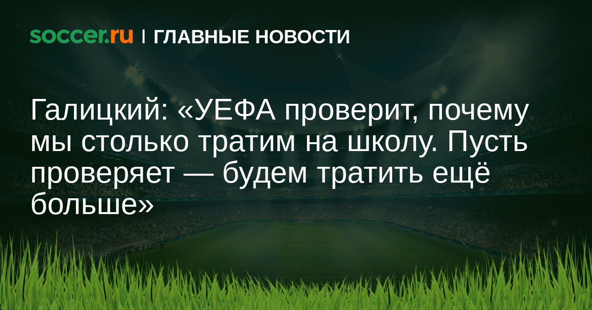 «Нам пришло сегодня из УЕФА письмо в офис, по клубу к нам претензий нет, но заинтересовались, почему мы очень много тратим на школу. Приедут проверять. Ну это так и есть — мы построили 12 манежей за два года, наняли 110 тренеров, у нас 6500 воспитанников, ещё есть академия и общеобразовательная школа», — написал Галицкий.