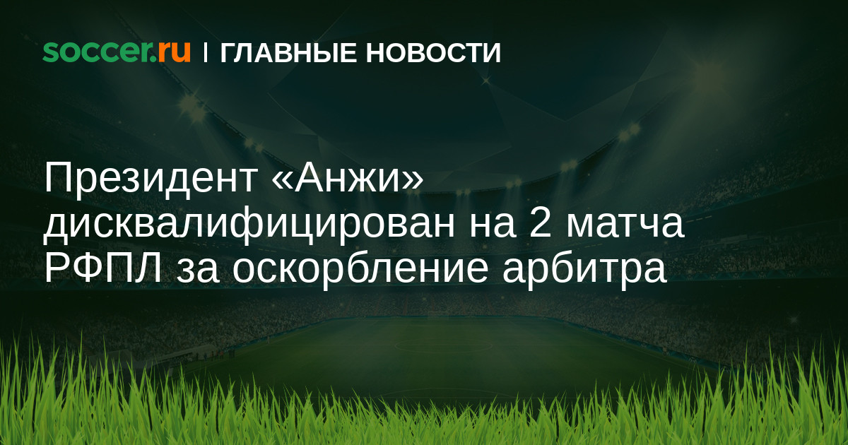 «Применить к президенту „Анжи“ Кадиеву санкции в виде дисквалификации на два матча чемпионата России и штрафа в размере 30 тысяч рублей».