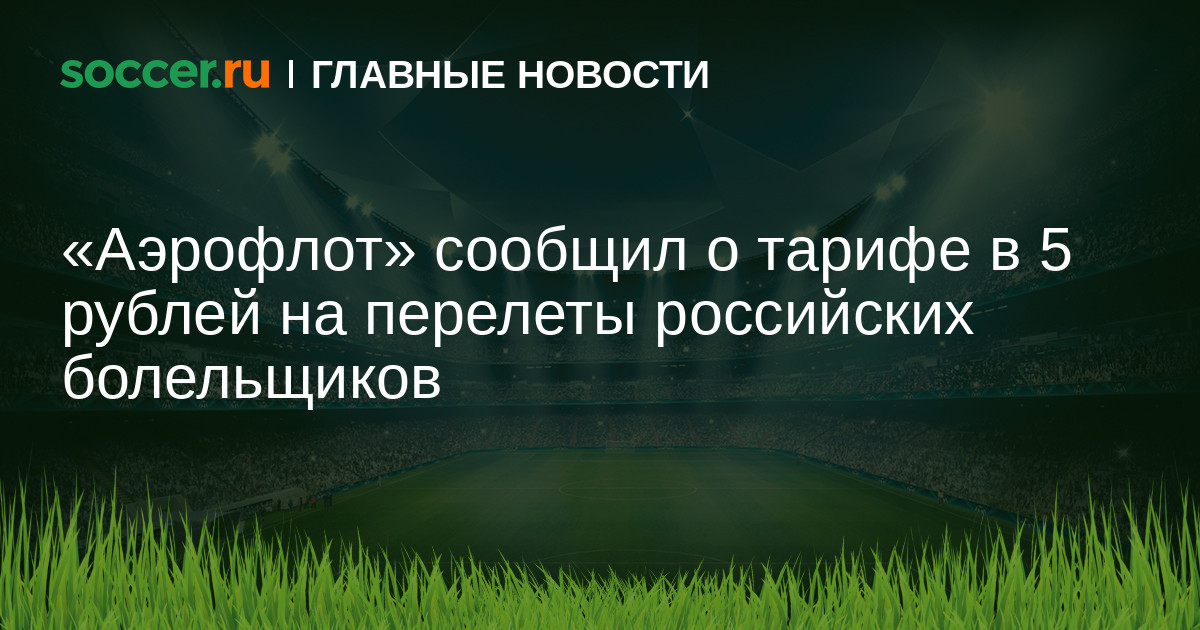 «Специальный „тариф болельщика“ составит пять рублей за полетный сегмент (с учетом всех такс и сборов) <...> Тариф будет действовать на маршрутах из пунктов сети маршрутов ПАО „Аэрофлот“ внутри Российской Федерации в города проведения игр сборной России и обратно и между городами игр в пределах трех дней от даты игры (до игры — рейсы в город матча, после игры — рейсы из города матча)», — говорится в сообщении «Аэрофлота».