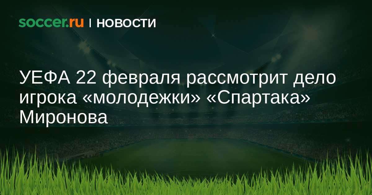 УЕФА рассмотрит дисциплинарное дело в отношении игрока молодежной команды московского «Спартака» Леонида Миронова 22 февраля.