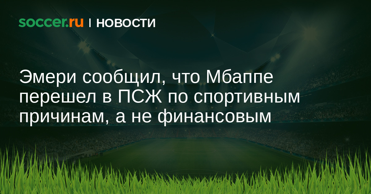 Главный тренер ПСЖ Унаи Эмери отметил, что талантливый форвард Килиан Мбаппе предпочел парижский коллектив по спортивным причинам, а не финансовым: