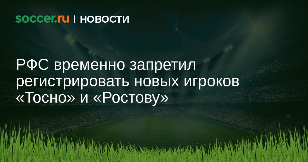 Источник сообщает, что РФС временно запретил «Ростову» и «Тосно» регистрировать новых игроков.
