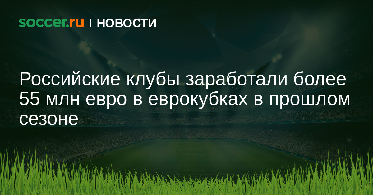 Российские клубы заработали в общей сложности 55,336 млн евро за участие в еврокубках в прошлом сезоне.