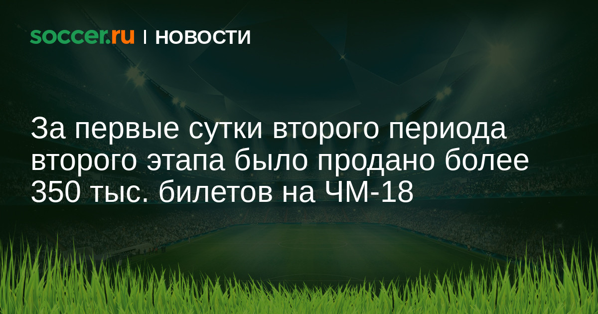 «Второй период второго этапа продаж стартовал 13 марта и продлится до 3 апреля. Билеты реализуются в порядке живой очереди, в продаже доступны билеты на все матчи, кроме финала и встречи между сборными Аргентины и Исландии в Москве. Также доступны билеты четвертой категории на определенные матчи, билеты данной категории предназначены только для резидентов РФ и стоят меньше обычных — цена самого дешевого билета четвертой категории на матч группового этапа составляет 1280 рублей, на матчи 1/8 финала — 2240 рублей, на четвертьфиналы и матч за третье место — 3800 рублей, на полуфиналы — 4480 рублей. Всего ФИФА выделила 350 тыс. билетов четвертой категории, из них 60% были распределены на первом этапе.