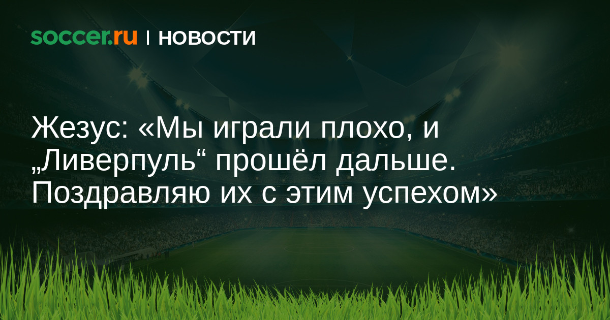 Нападающий «Манчестер Сити» Габриэль Жезус считает, что его команда справедливо уступила «Ливерпулю» в четвертьфинале Лиги чемпионов: