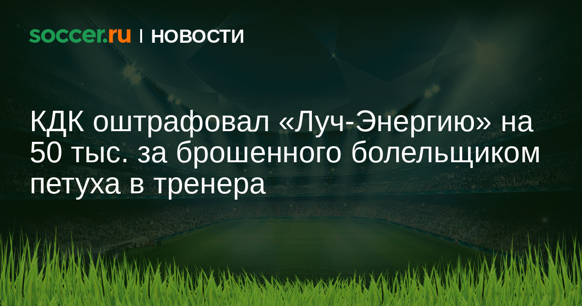 Глава КДК Артур Григорьянц заявил, что комитет принял решение оштрафовать «Луч-Энергию» на 50 тысяч рублей за то, что один из болельщиков команды бросил живого петуха в сторону скамейки запасных дальневосточной команды в матче 33-го тура ФНЛ с «Факелом» (3:1), а также за оскорбительные кричалки в адрес главного тренера дальневосточников Александра Григоряна.