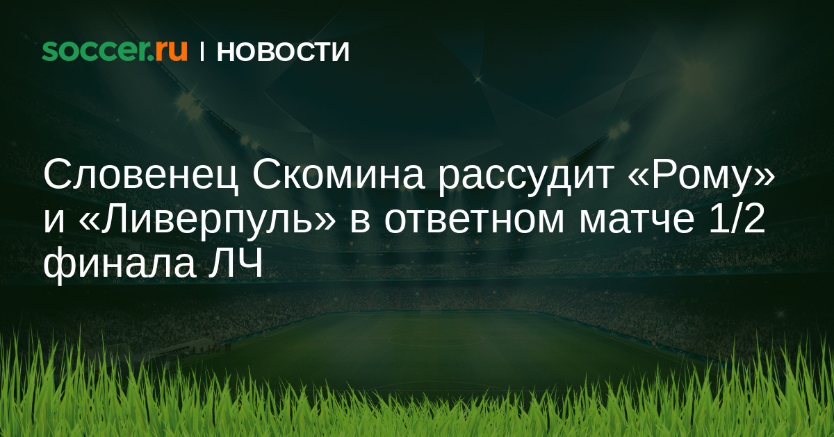 Словенский арбитр Дамир Скомина назначен на ответный полуфинальный поединок Лиги чемпионов между «Ромой» и «Ливерпулем».