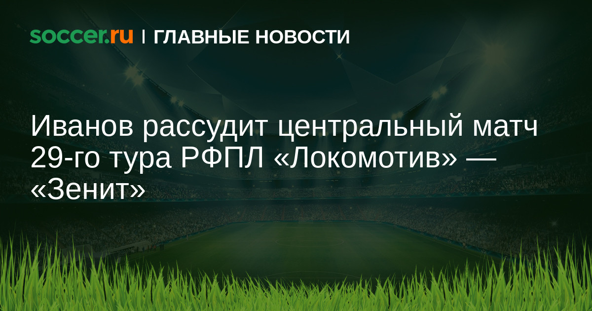 Пресс-служба РФС сообщает, что бригада арбитров во главе с Сергеем Ивановым из Ростова-на-Дону обслужит матч 29-го тура чемпионата России по футболу между «Локомотивом» и «Зенитом».