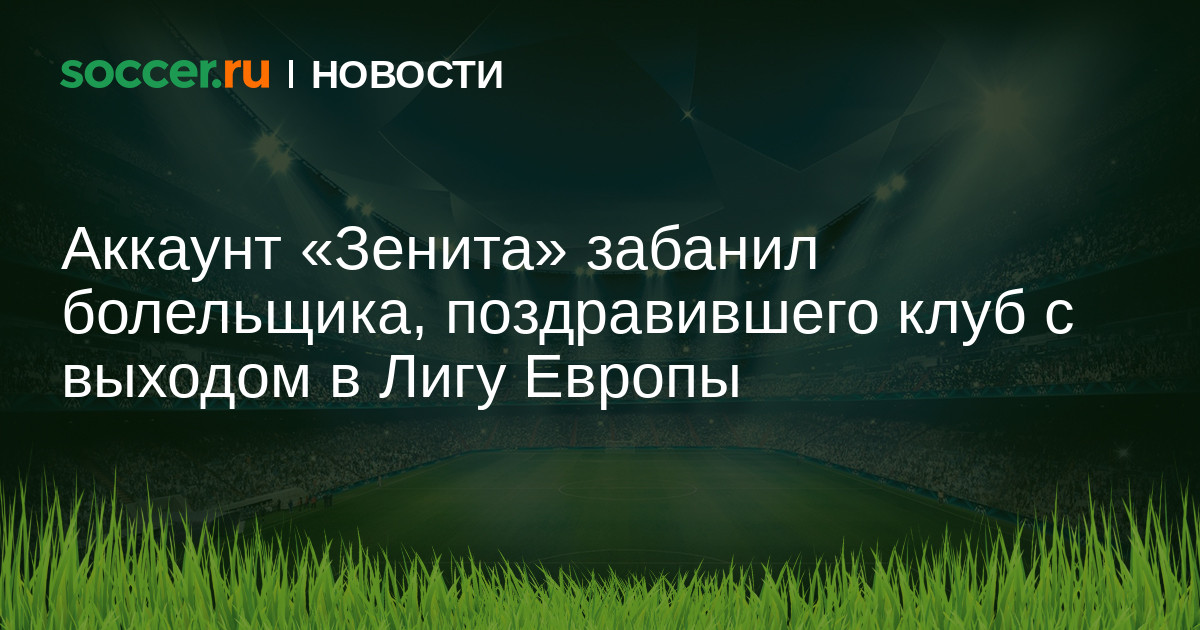 Официальный аккаунт «Зенита» в социальной сети «ВКонтакте» забанил болельщика, поздравившего клуб с выходом в Лигу Европы. Напомним, что клуб из Санкт-Петербурга за тур до конца чемпионата лишился шансов на попадание в Лигу чемпионов и в новом сезоне вновь сыграет в Лиге Европы.