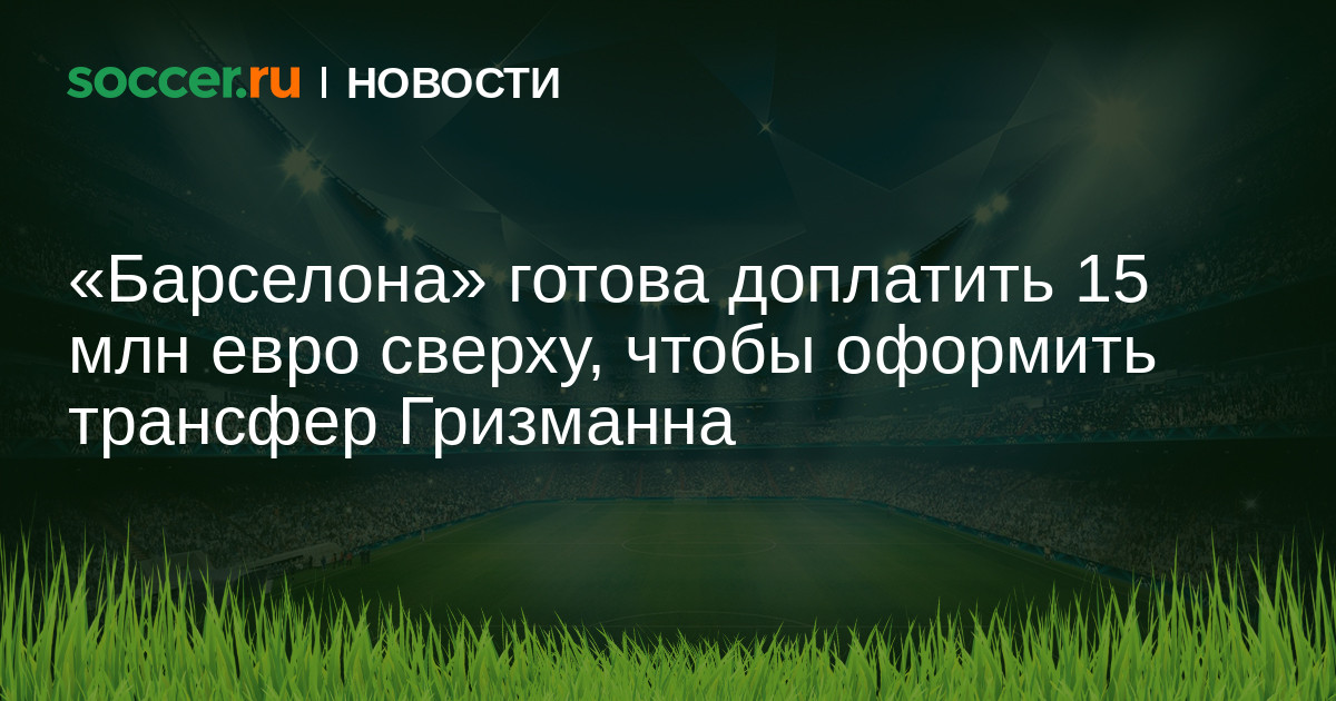 Согласно данным из прессы, «Барселона» готова доплатить 15 миллионов евро сверху, чтобы оформить трансфер нападающего «Атлетико» Антуана Гризманна.