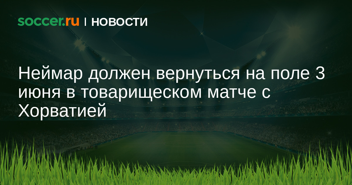 Нападающий «Пари Сен-Жермен» Неймар, восстанавливающийся после травмы пятой плюсневой кости, должен вернуться в строй к ближайшему товарищескому матчу сборной Бразилии против Хорватии, который состоится 3 июня. Об этом сообщил врач бразильской команды Родриго Ласмар.