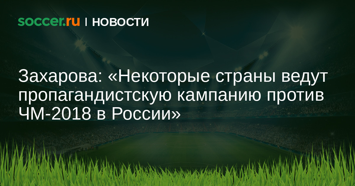 Представитель МИД РФ Мария Захарова заявила, что агитационная кампания по запугиванию болельщиков и туристов, планирующих посетить чемпионат мира по футболу в России, ведется в некоторых западных странах.
