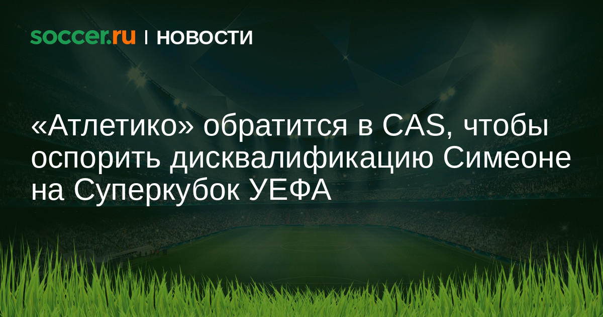 «Атлетико» решил обратиться в Спортивный арбитражный суд (CAS) с целью оспорить дисквалификацию главного тренера Диего Симеоне на матч за Суперкубок УЕФА, информирует источник.