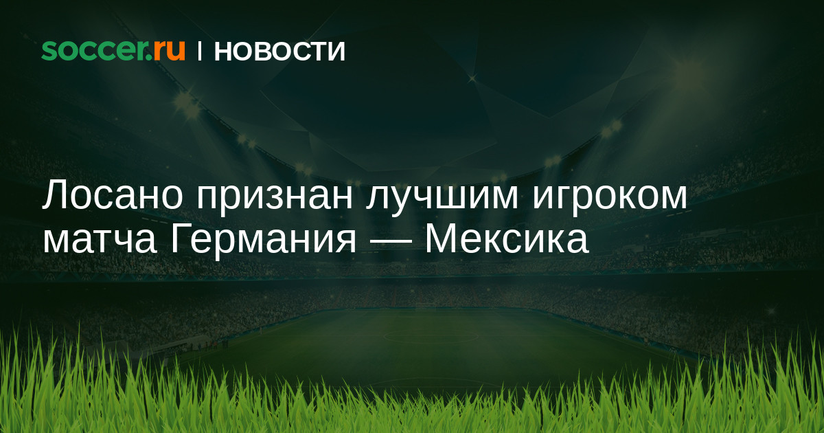 Нападающий сборной Мексики Ирвинг Лосано признан лучшим игроком матча первого тура группового этапа чемпионата мира с командой Германии (1:0). Лосано стал автором единственного гола в поединке, принеся своей команде 3 очка.