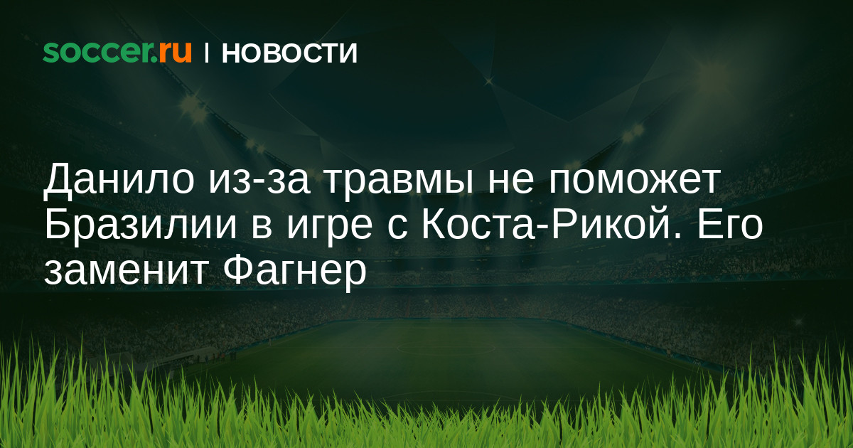 Правый защитник «Манчестер Сити» Данило не поможет сборной Бразилии в матче 2-го тура группового этапа ЧМ-2018 против Коста-Рики. У 26-летнего футболиста мышечная травма в области тазобедренного сустава. Пресс-служба национальной команды сообщила, что вместо него на поле выйдет защитник «Коринтианс» Фагнер.