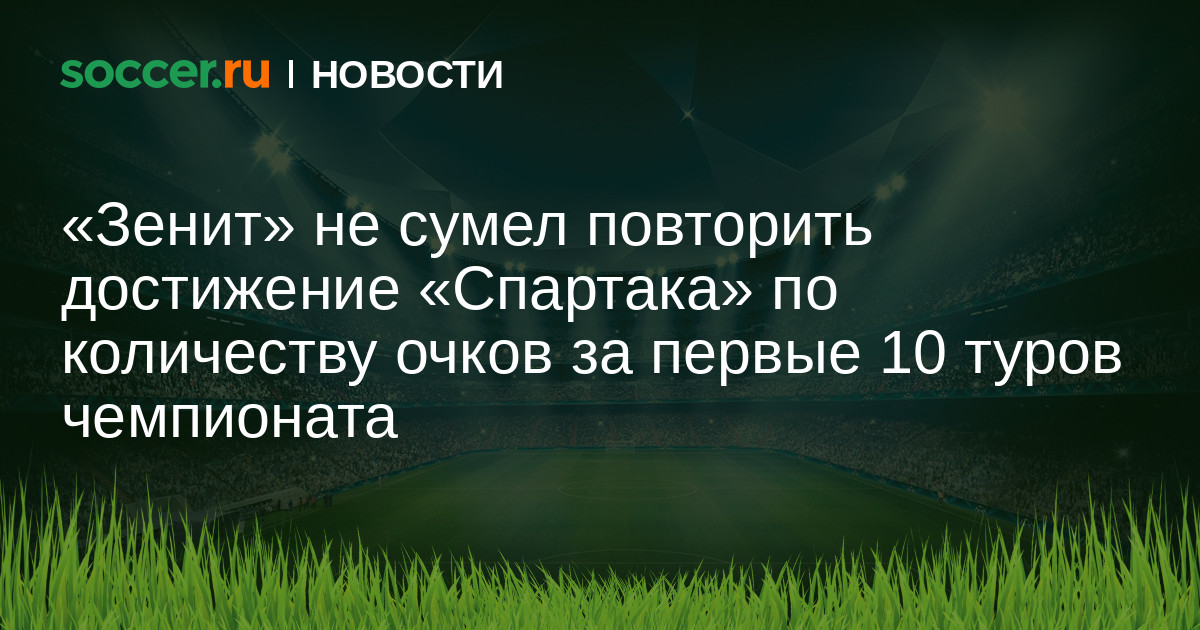 «Зенит», сыграв в 10-м туре РПЛ вничью с «Краснодаром», не сумел повторить рекорд «Спартака» по набранным очкам в первой трети чемпионата. В 1994-м и 2000-м годах красно-белые в первых десяти матчах набирали по 28 очков.