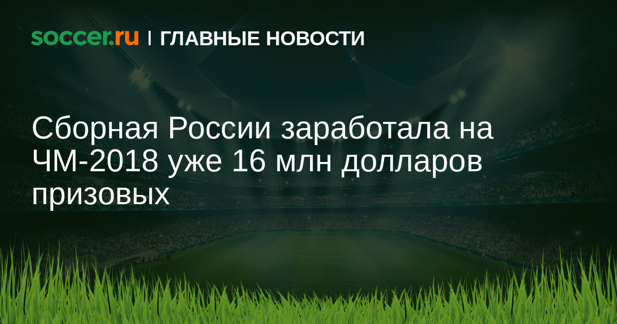 По итогам группового этапа сборная России заработала 12 млн долларов, а за проход первого раунда плей-офф получит еще 4 млн.