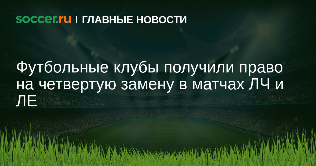 Пресс-служба УЕФА сообщает, что футбольные клубы смогут совершать четвертую замену в дополнительное время в матчах Лиги чемпионов и Лиги Европы.