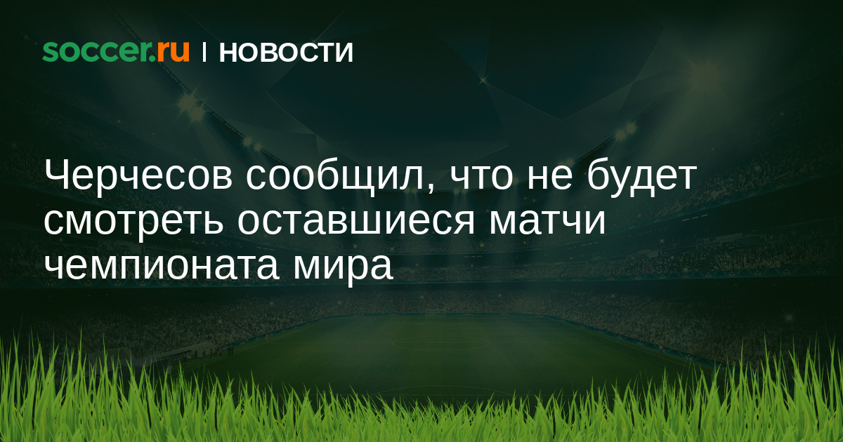 Главный тренер сборной России Станислав Черчесов признался, что не будет смотреть оставшиеся поединки чемпионата мира. При этом Черчесов отметил, что будет поддерживать сборную Бельгии, которая в полуфинале сыграет против Франции.