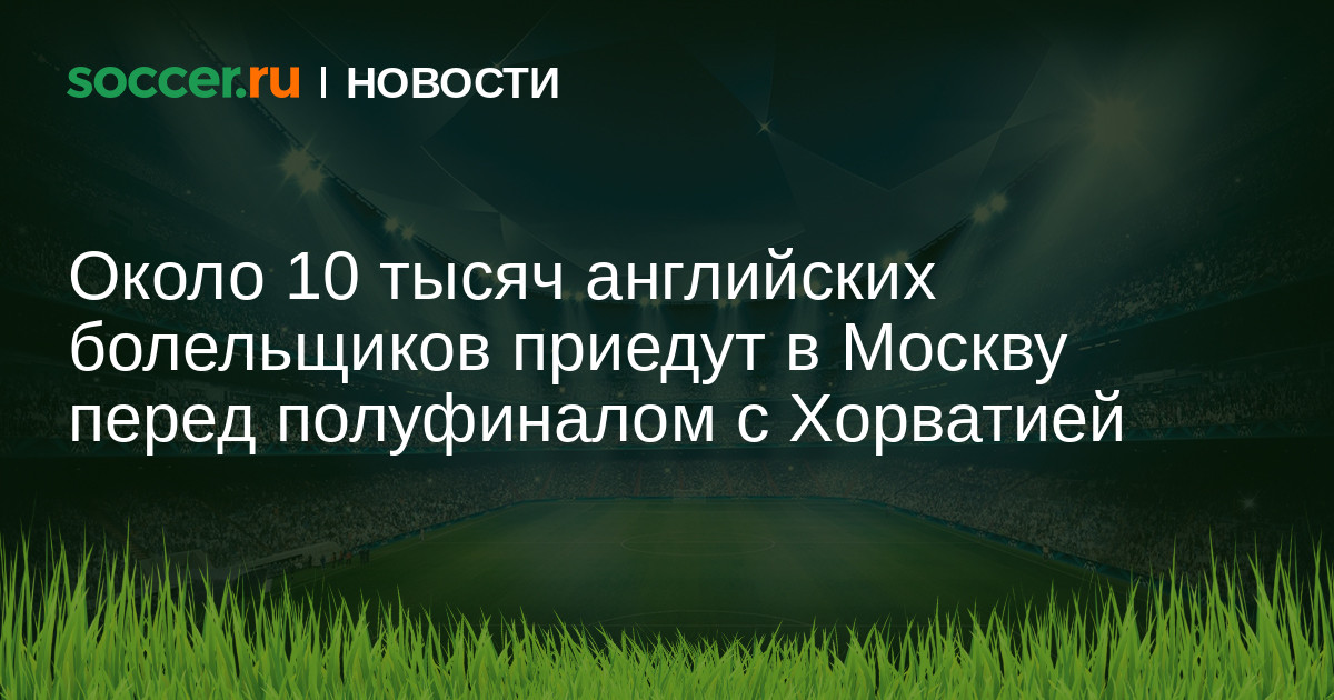 Футбольная ассоциация Англии ожидает, что около 10 тысяч английских болельщиков приедут в Москву, где в среду состоится полуфинальный матч ЧМ-2018 между сборными Англии и Хорватии. Об этом сообщают британские СМИ.