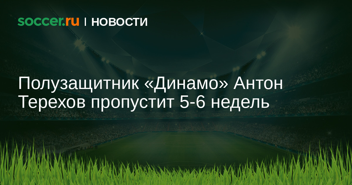 Полузащитник «Динамо» Антон Терехов получил травму. У футболиста диагностировано повреждение прямой головки четырёхглавой мышцы правого бедра. По прогнозам врачей, 20-летний футболист пропустит от пяти до шести недель.
