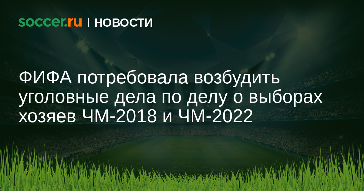 Глава ФИФА Зепп Блаттер по совету председателя арбитражной палаты комитета по этике ФИФА Ханс-Йоахима Эккерта подал в швейцарскую прокуратур иск с требованием возбудить уголовные дела в отношении ряда лиц, допустивших серьезные нарушения при выборе стран-хозяев чемпионатов мира 2018 и 2022 годов.