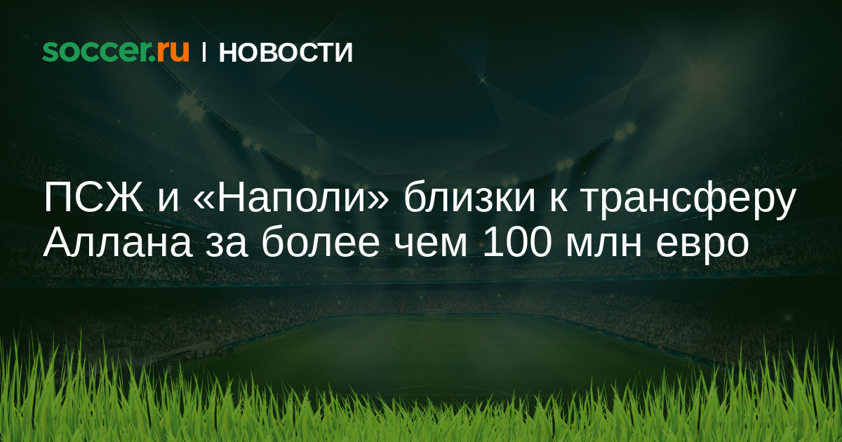 Полузащитник «Наполи» Аллан близок к переходу в ПСЖ. По слухам, стороны практически согласовали этот переход, сумма трансфера составит более 100 млн евро.