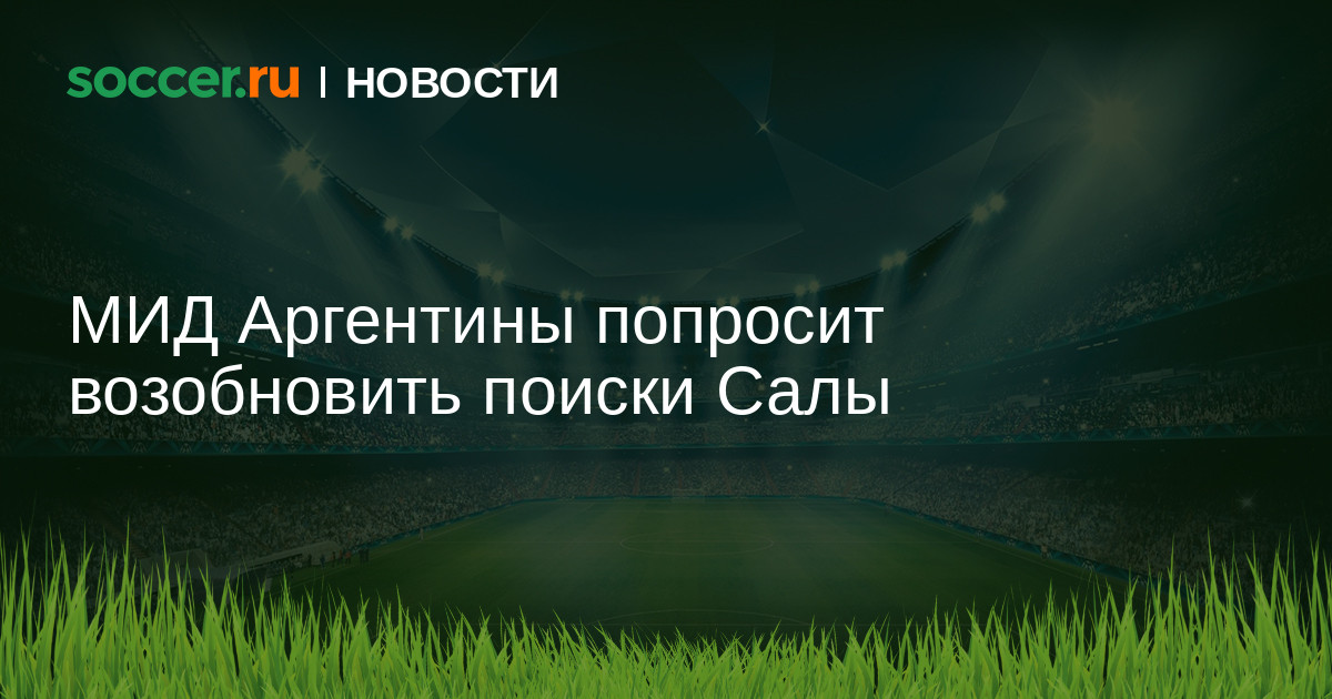 МИД Аргентины в ближайшее время сделает запрос к правительству Великобритании и Франции с просьбой возобновить поиски пропавшего футболиста Эмилиано Салы, самолет с которым исчез с радаров в понедельник, пролетая около острова Гернси в Ла-Манше. Местная полиция искала самолет несколько дней, но в четверг прекратила активные поиски, заявив, что шансы найти живым Салу и пилота судна практически равны нулю. После этого ряд футболистов, включая Лионеля Месси, Серхио Агуэро и Гонсало Игуаина высказался с просьбой о продолжении поисковой операции.