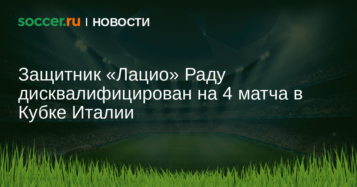 Защитник «Лацио» Штефан Раду дисквалифицирован на 4 матча в Кубке Италии после встречи с «Интером» (1:1, 4:3 — пенальти) в четвертьфинале турнира.