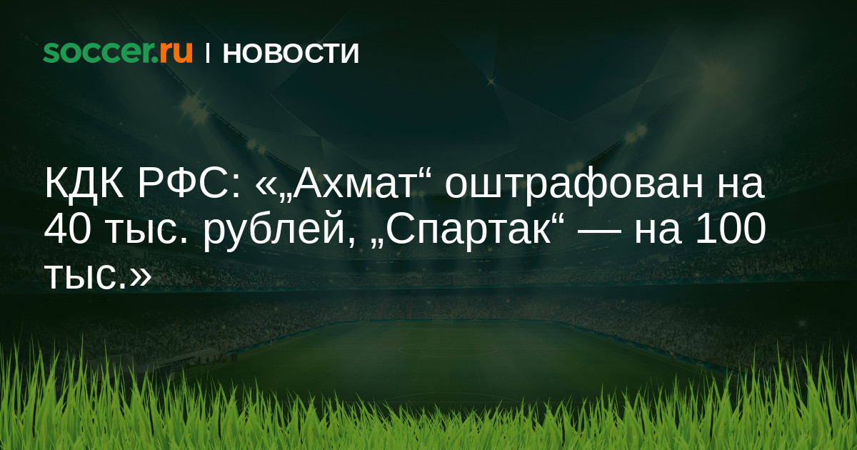 Глава КДК РФС Артур Григорьянц сообщил, что комитет оштрафовал московский «Спартак» на 100 тысяч рублей по итогам матча 21-го тура РПЛ с грозненским «Ахматом».