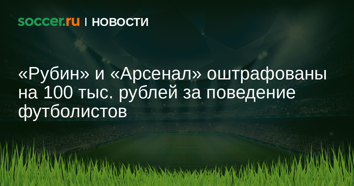 Глава Контрольно-дисциплинарного комитета РФС Артур Григорьянц сообщил, что «Рубин» и тульский «Арсенал» были оштрафованы на 100 тыс. рублей каждый за неподобающее поведение футболистов.