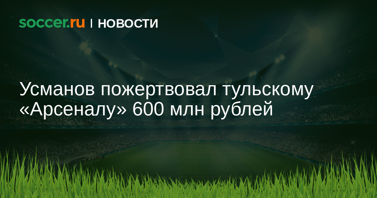 Представитель Алишера Усманова подтвердил, что бизнесмен пожертвовал тульскому «Арсеналу» 600 млн рублей.