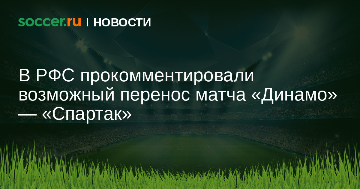 Российский футбольный союз не располагает информацией о переносе матча 4-го тура РПЛ между «Спартаком» и «Динамо». Насколько нам известно, на уровне РПЛ этот вопрос также не обсуждался, и футбольные клубы готовятся к проведению матча в установленные сроки. «Спартак» — «Динамо» — это старейшее отечественное дерби, которого болельщики всегда ожидают с большим интересом. Надеемся увидеть в субботу яркий, захватывающий футбол в исполнении обеих команд.
