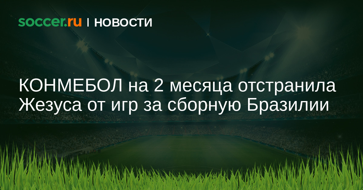 Нападающий «Манчестер Сити» Габриэл Жезус, по решению КОНМЕБОЛ, на 2 месяца отстранён от выступлений за сборную Бразилии и оштрафован на 30 тыс. долларов.