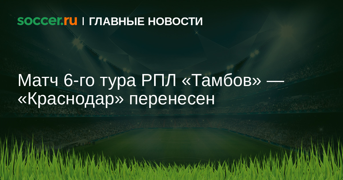 Сегодня утром РПЛ оповестила футбольный клуб «Тамбов» о том, что в связи с участием ФК «Краснодар» в матчах плей-офф Лиги Чемпионов УЕФА и в соответствии с пунктом 6.4.1 Регламента РПЛ матч 6-го тура «Тамбов» — «Краснодар» переносится с 18 на 17 августа. Время начала остается прежним — 16.30 мск.