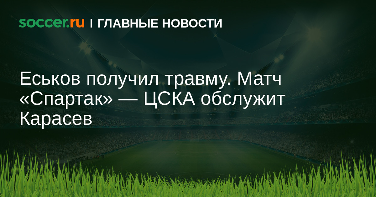 Алексей Еськов должен был обслужить матч 6-го тура РПЛ «Спартак» — ЦСКА, однако арбитр получил травму. Его заменит Сергей Карасев.