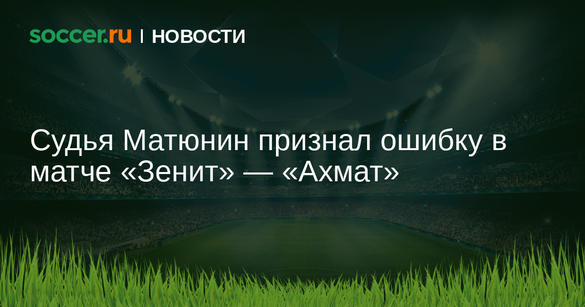 Арбитр матча 6-го тура Российской Премьер-Лиги «Зенит» — «Ахмат» Алексей Матюнин признался, что допустил ошибку, отменив гол игрока петербуржцев Эмилиано Ригони.